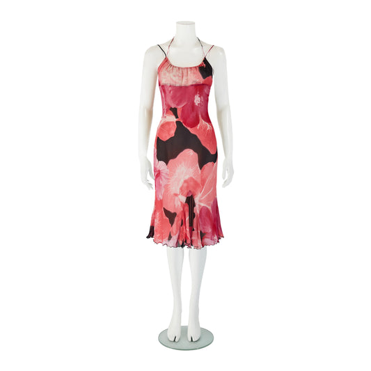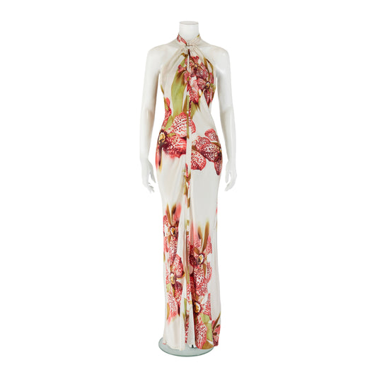 Roberto Cavalli F/W 2004 Orchid Print Silk Halter-neck Dress