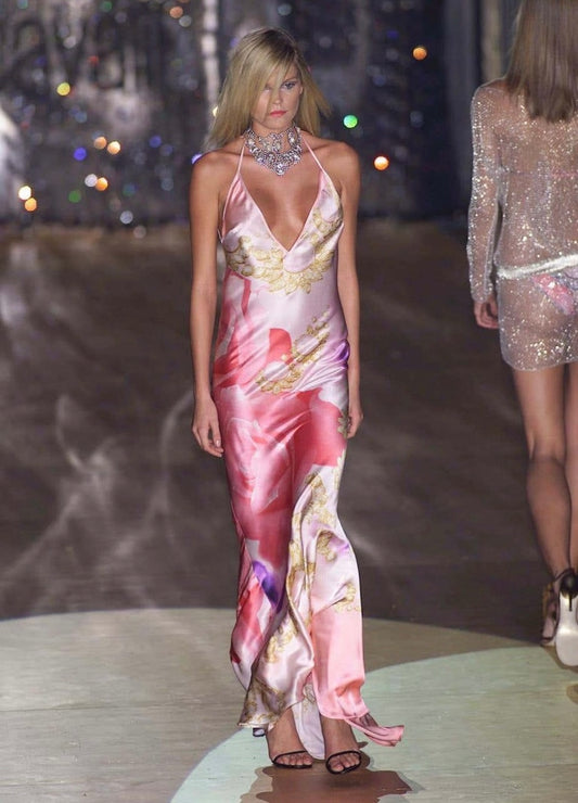 Roberto Cavalli S/S 2002 Silk Leopard Print Halter-neck Dress