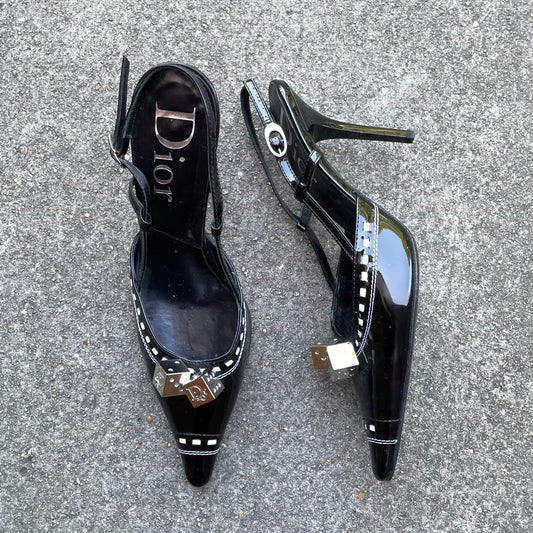 RARE Dior by John Galliano 2004 Black Gambler Dice Patent Leather Slingback Heels