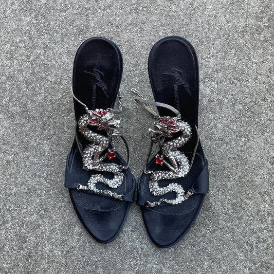 Giuseppe Zanotti S/S 2004 Dragon Black Satin Heels