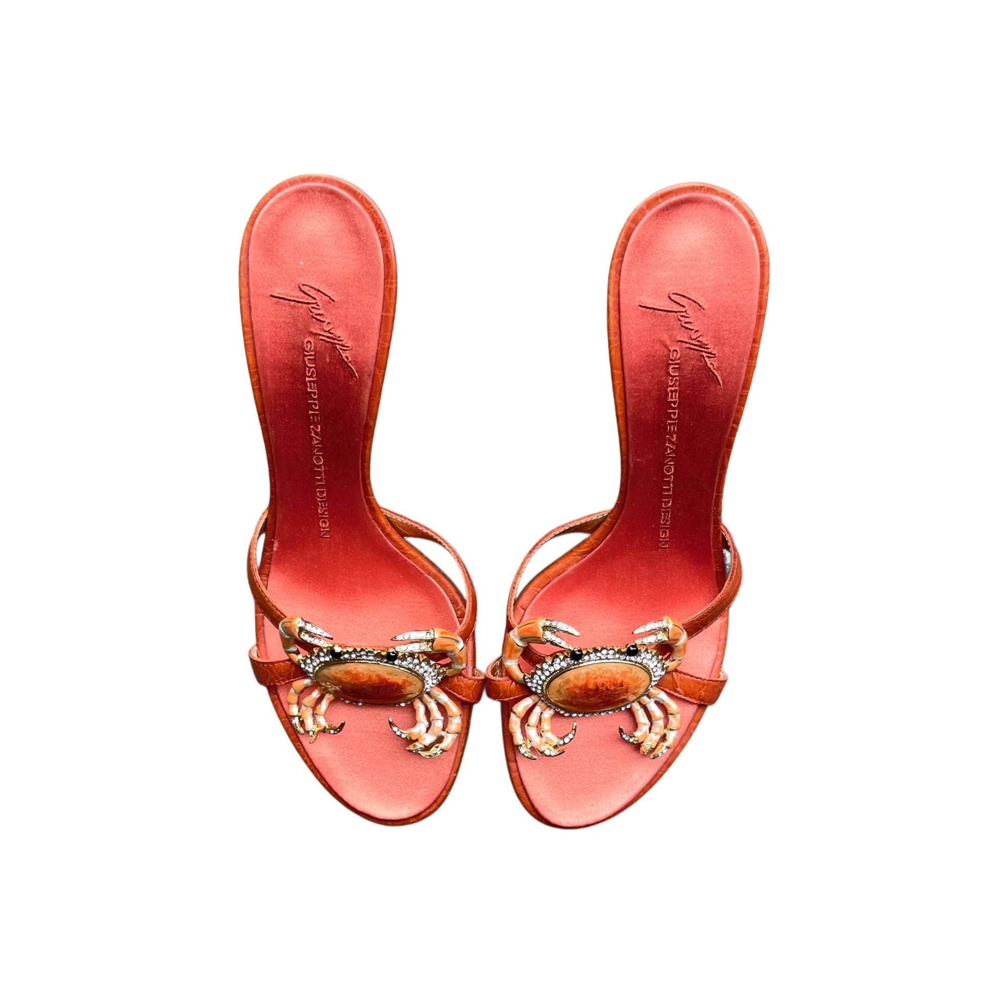EXTREMELY RARE Giuseppe Zanotti Vintage Crystal Rhinestone Encrusted Orange Crab Sandal Heels