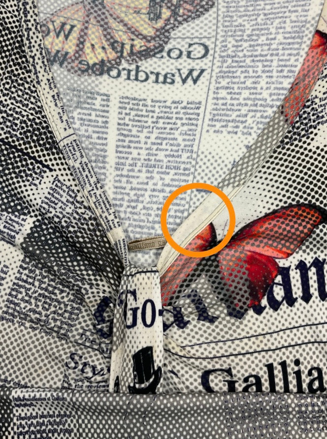 • Iconic Galliano gazette newspaper print with multicolour butterflies
