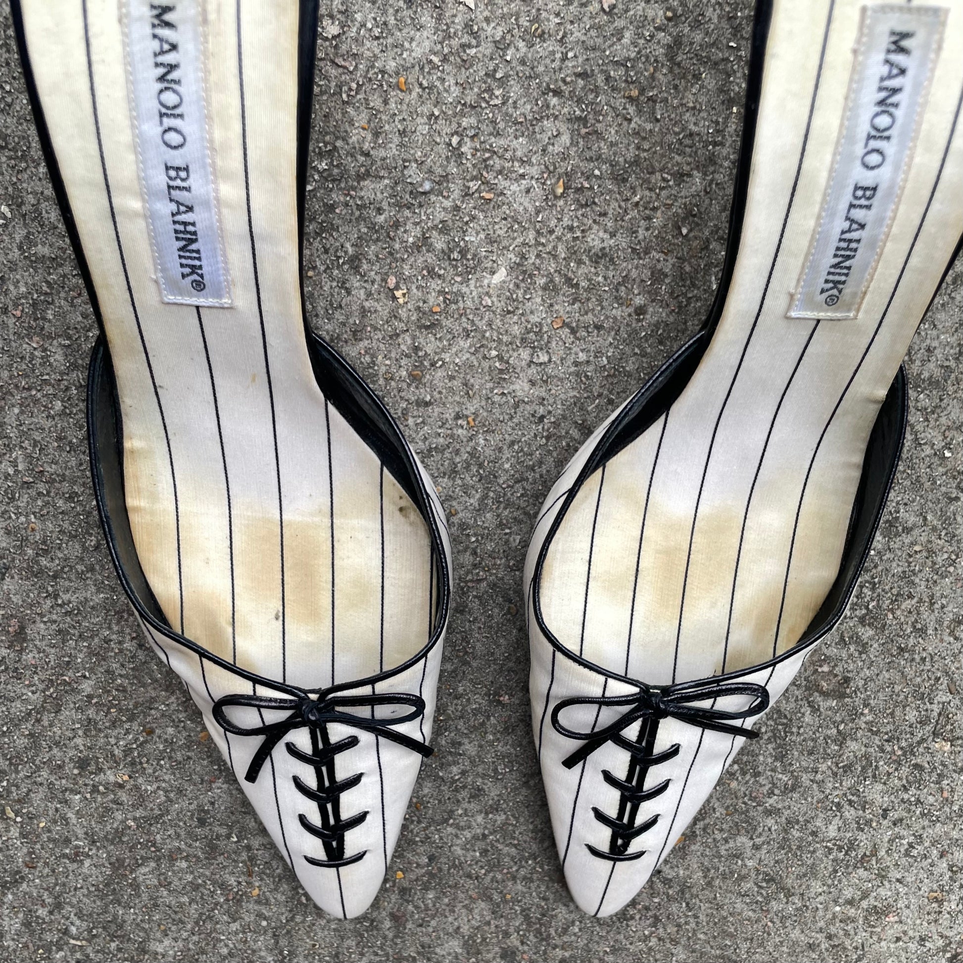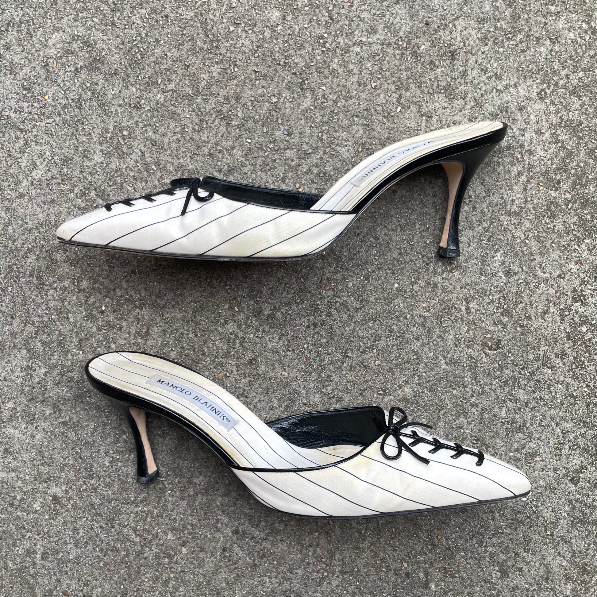 Manolo Blahnik 2000s Black & White Sneaker Bow Mule Heels