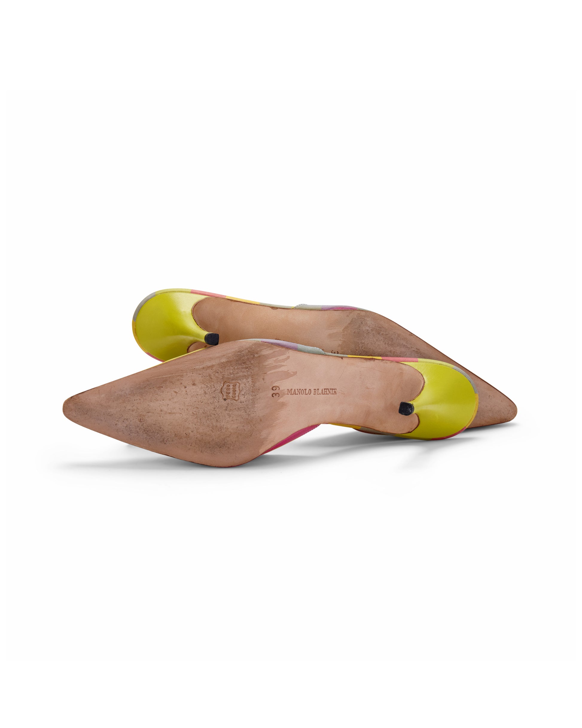 These iconic mule heels were famously featured in Sex and the City (Season 3, Ep 3) on Carrie Bradshaw. Featuring a vibrant multicolour plaid design and a signature buckle detail, these mules embody pop-culture history. A highly recognisable and collectible style seen on one of the most influential style icons on television.
