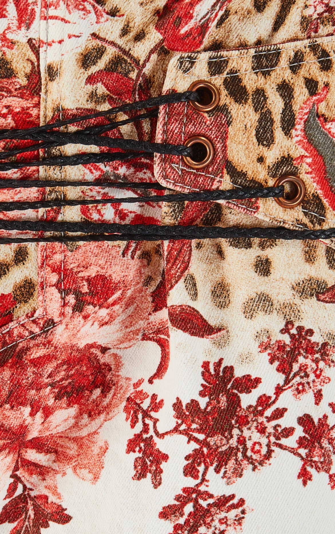 Roberto Cavalli S/S 2002 White Floral & Leopard Print Tie Up Jeans